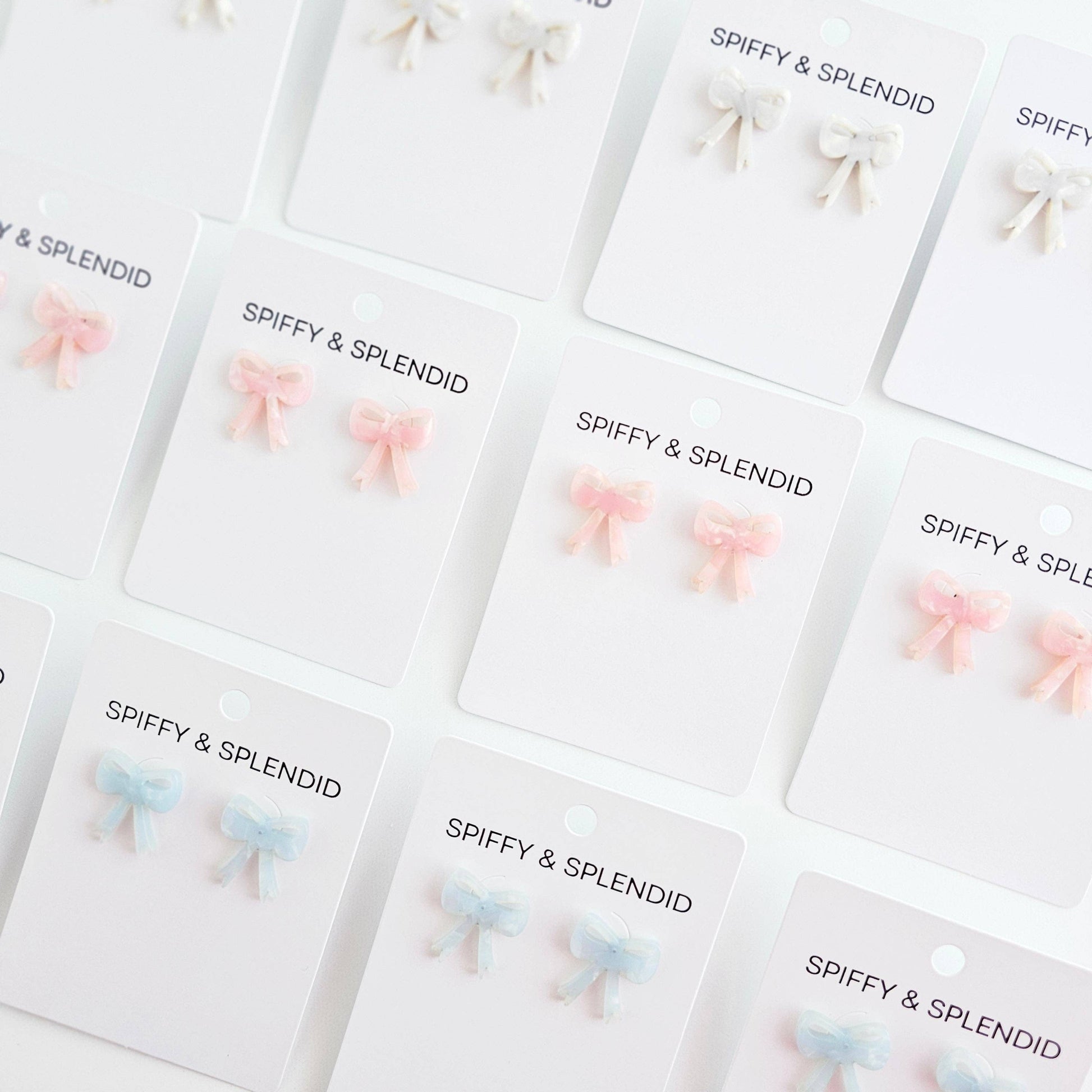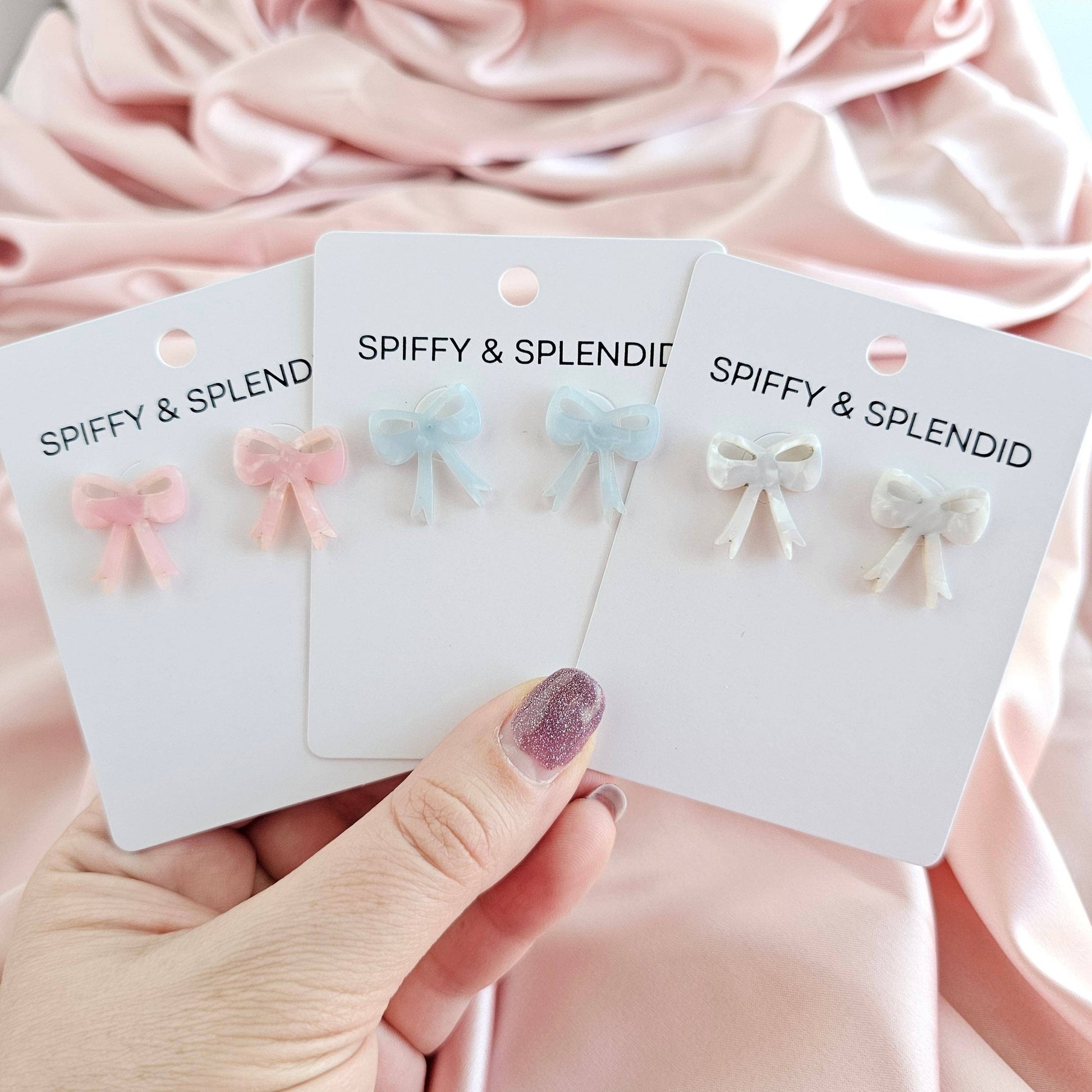 Hop on the trendy train with these adorable acrylic bow studs! These earrings will add a playful touch to any outfit. Perfect for those who like to keep things stylish and fun. These are perfect for the coquette aesthetic fashion trend for all your girlycore looks. * Hypoallergenic stainless steel posts * Durable plant-based acrylic