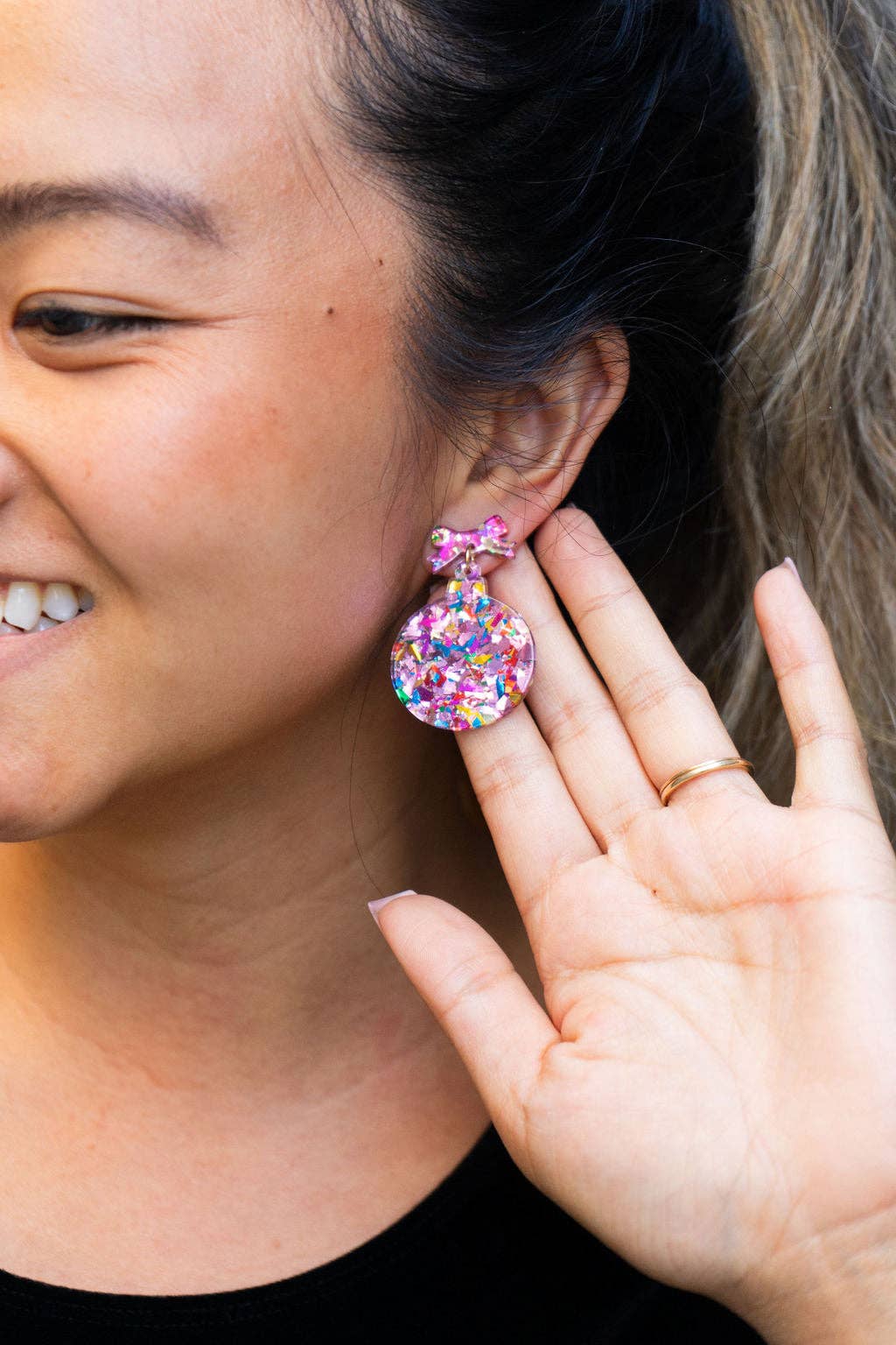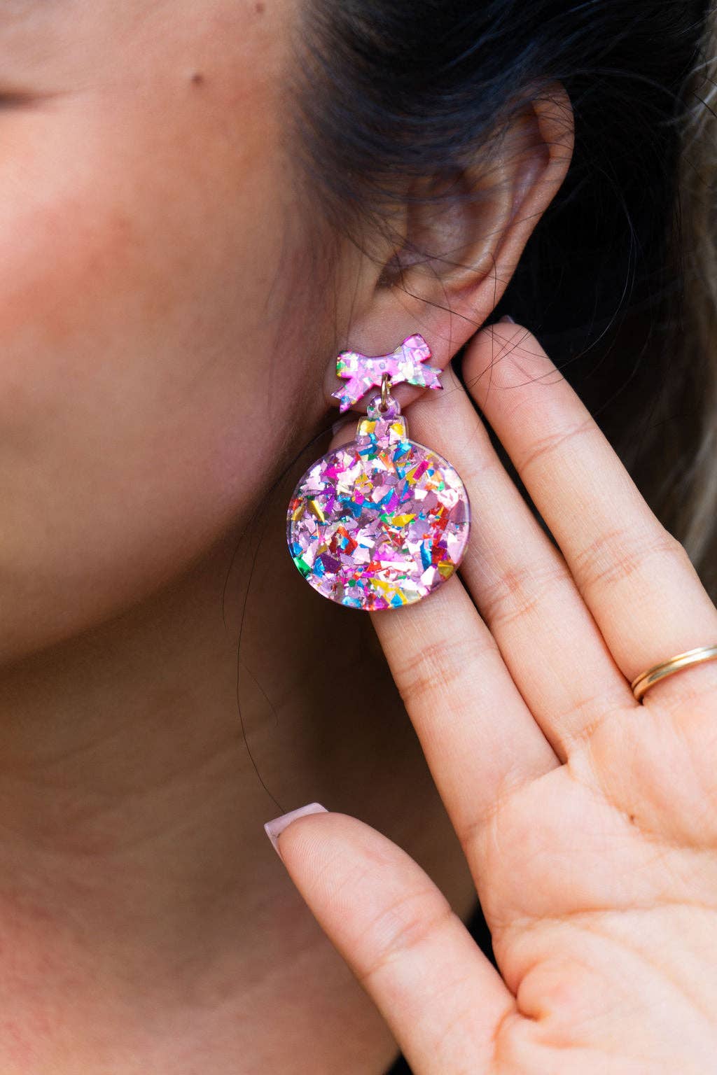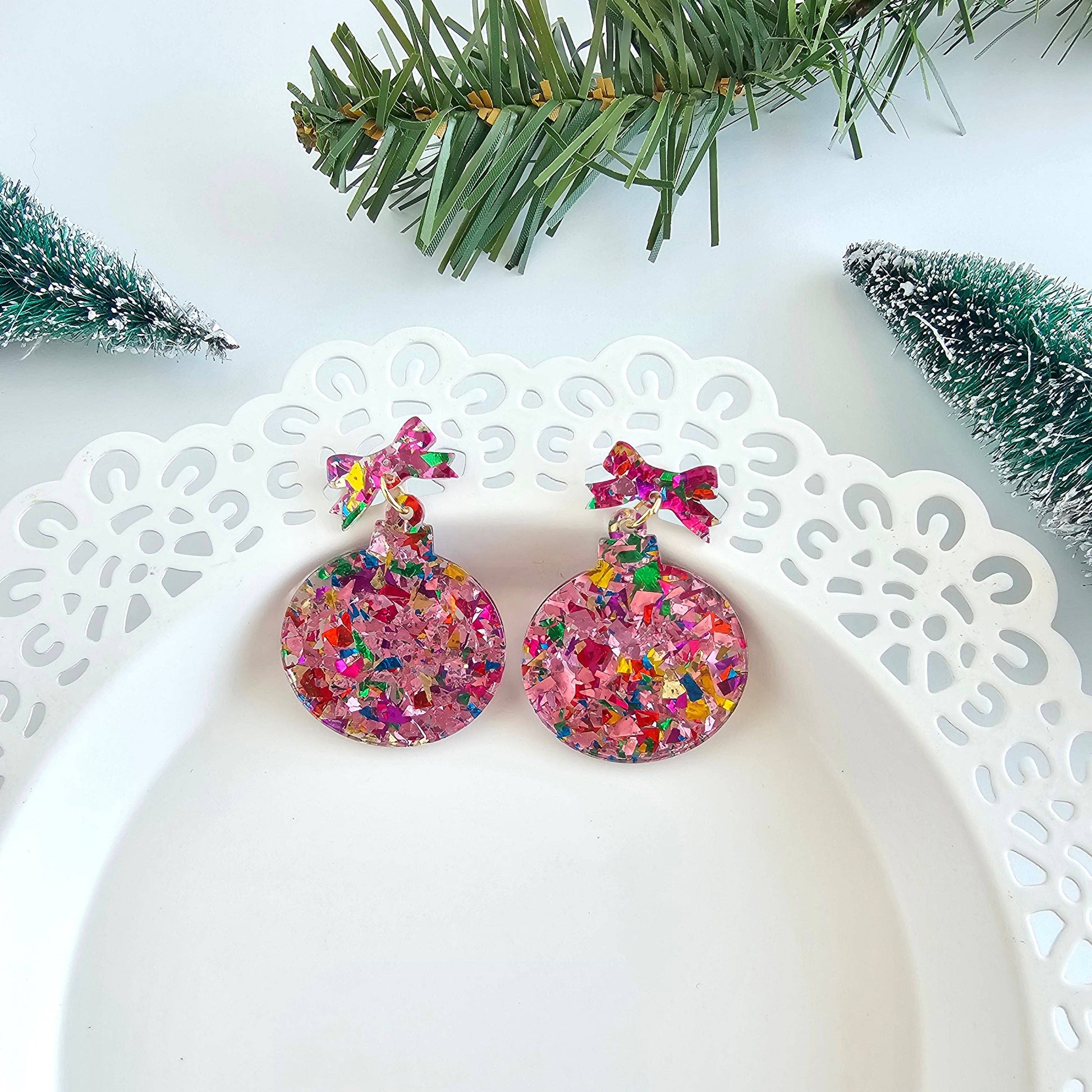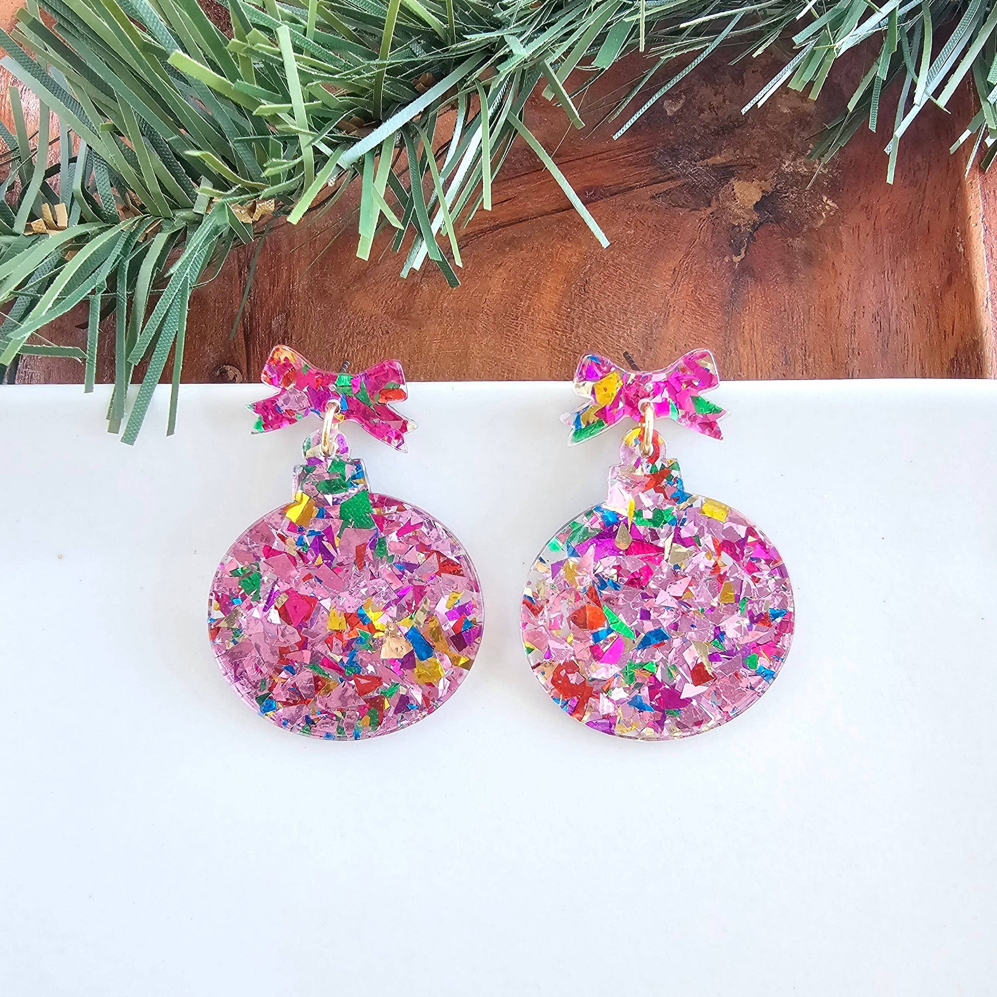 This holiday season, let your style be merry and bright with our sparkly confetti Christmas Ornament Earrings. Add a touch of sparkle to your festivities and embrace the joy of the season! 🎉🌟❄️ Our Christmas Ornaments come in three different colors and vintage-inspired shapes, adorned with a bow on top! * Hypoallergenic stainless steel posts *