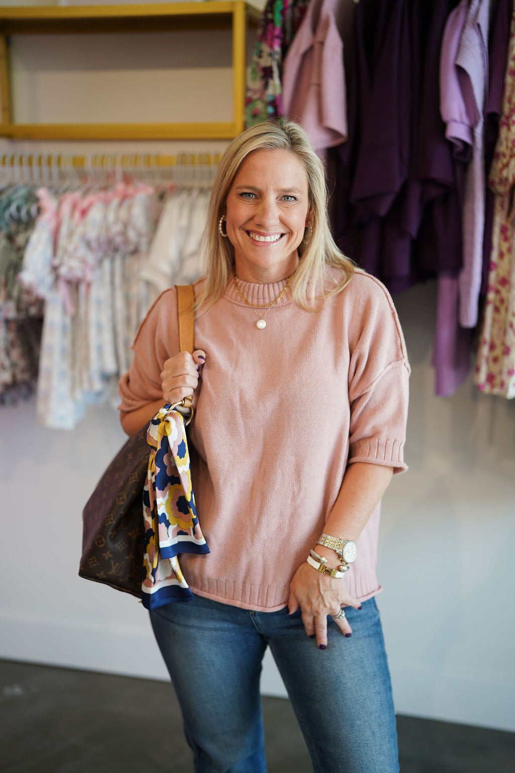 You don't want to miss this perfect southern fall top. It has a ribbed crew neckline with a casual drop shoulder. The loose fit guarantees comfort and a perfect look. Whether you leave it loose or give it a front tuck it's perfect for any day.