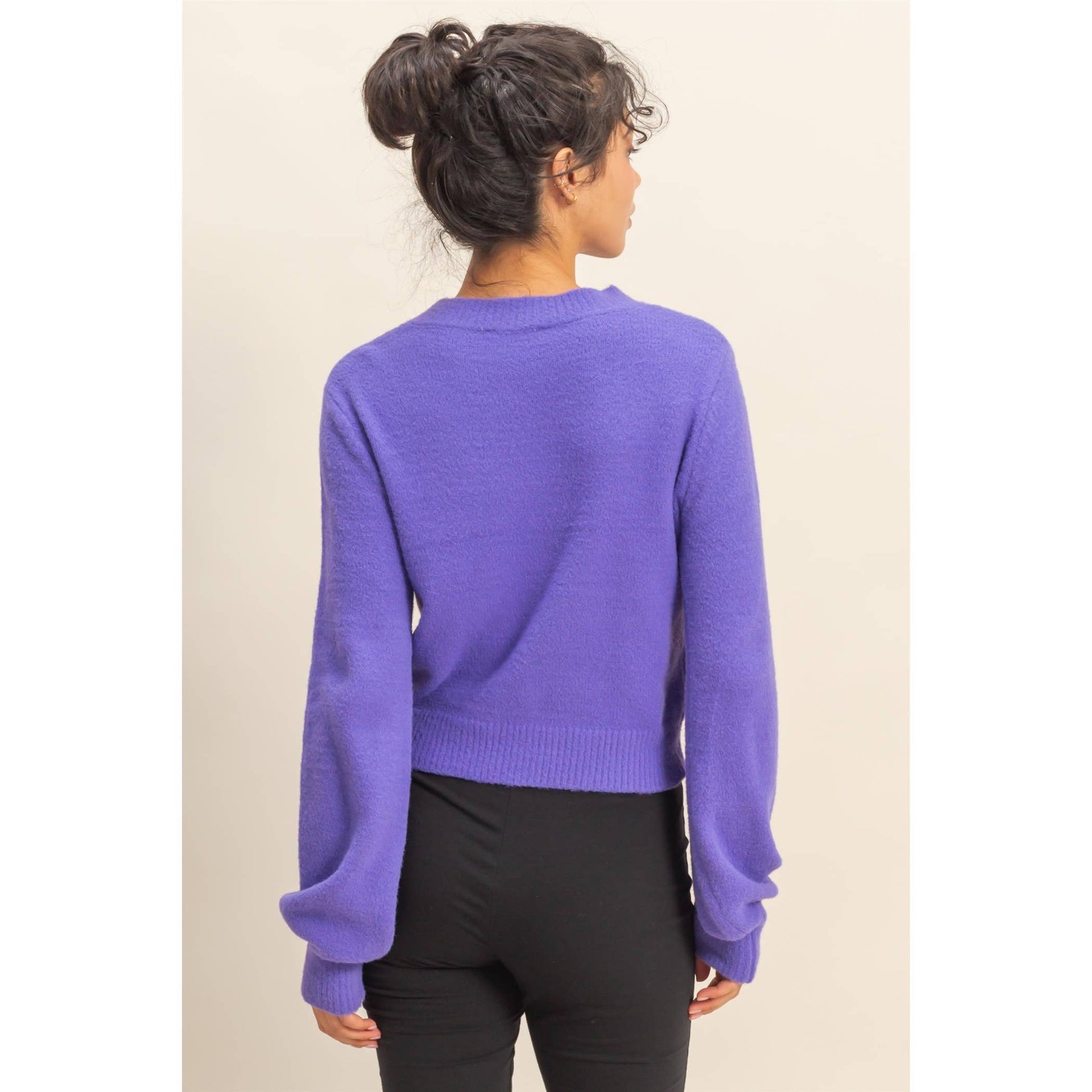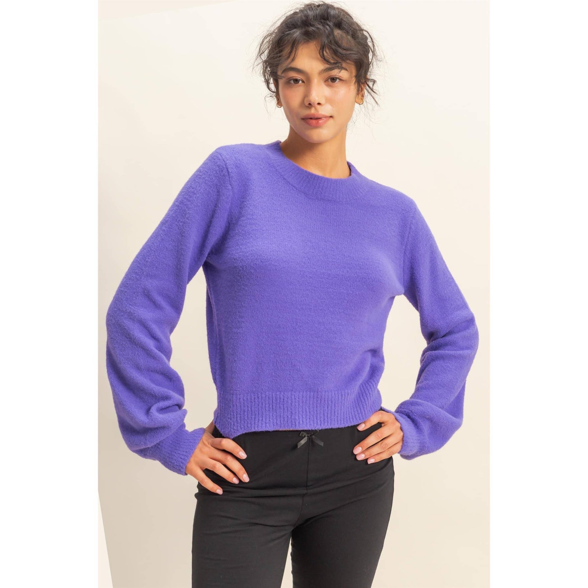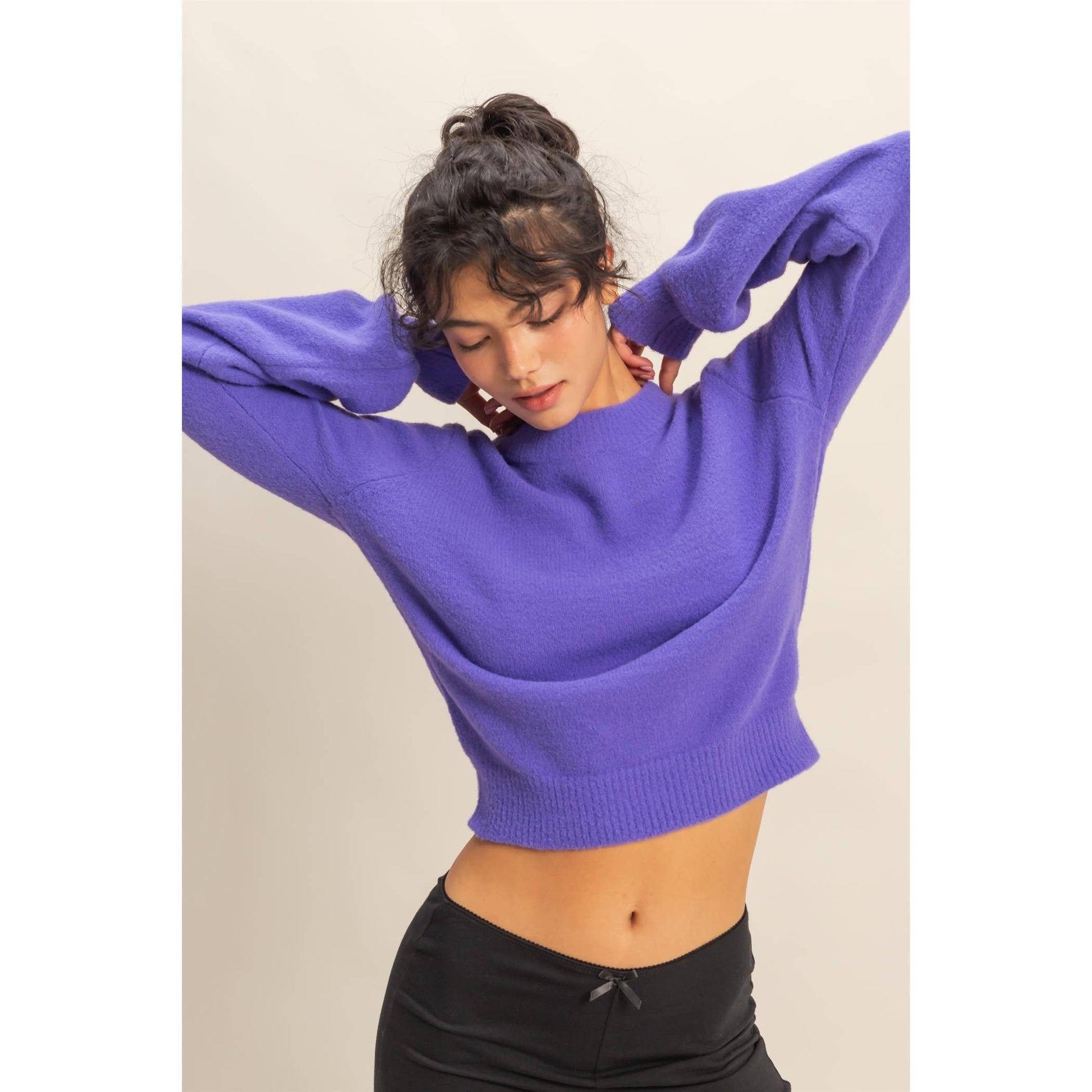 Be the one to stun when you head out in this cute sweater! The cropped silhouette is topped with a crew neck and long sleeves for extra warmth, attached to a flattering bodice. Ribbed edges complete the look. Wear with skinny jeans. 100% Nylon Imported. Designed In The USA