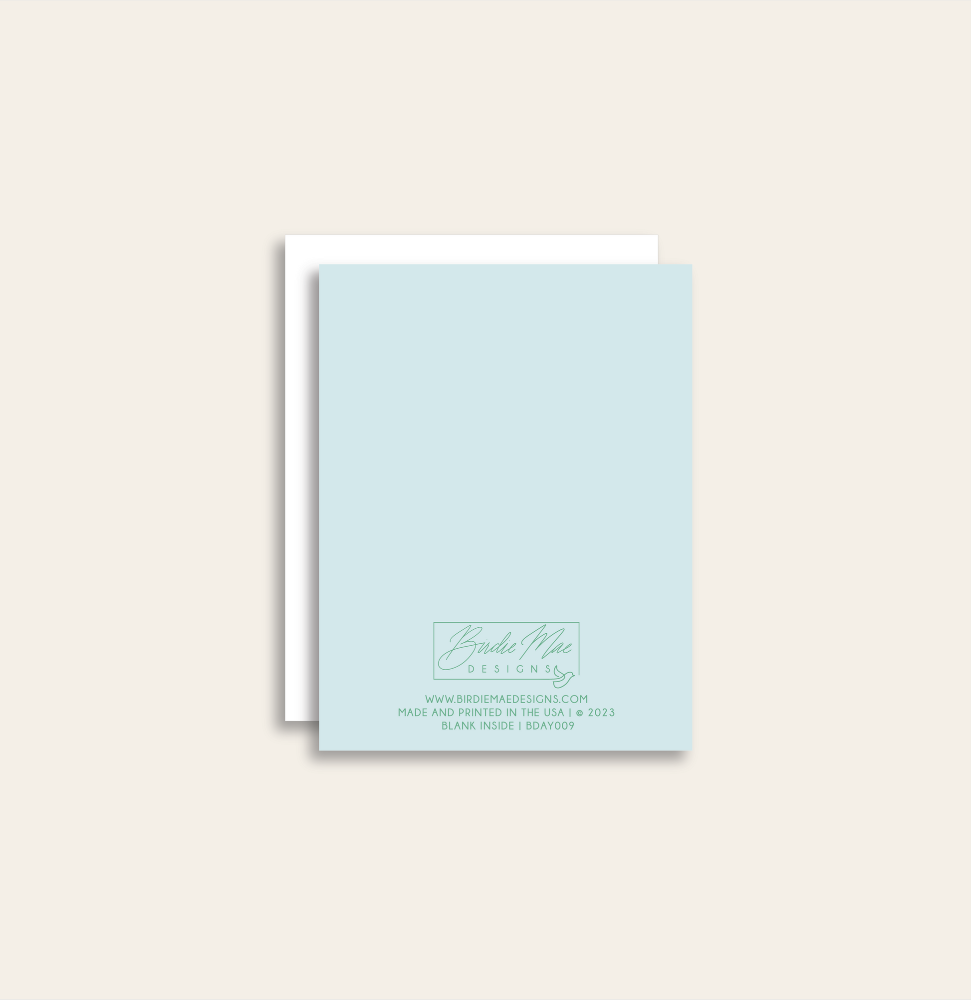 Lost count of those birthdays? We've all been there. 😂 Each card is folded to 4.25" tall by 5.5" wide, is blank inside and comes with a matching white envelope. Cards are packaged in cellophane sleeves. - Set of one card and white envelope -Â