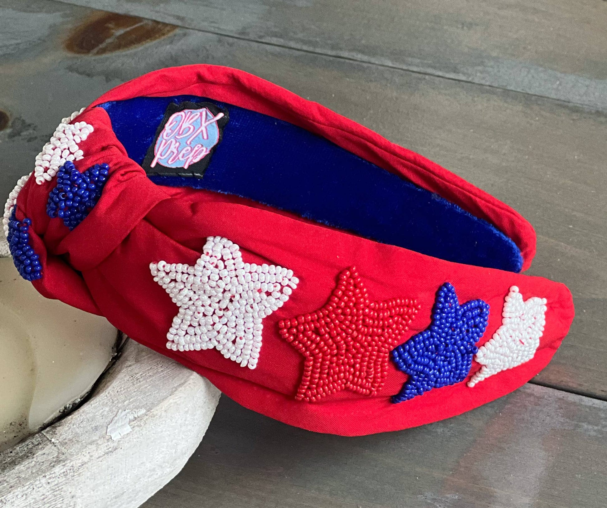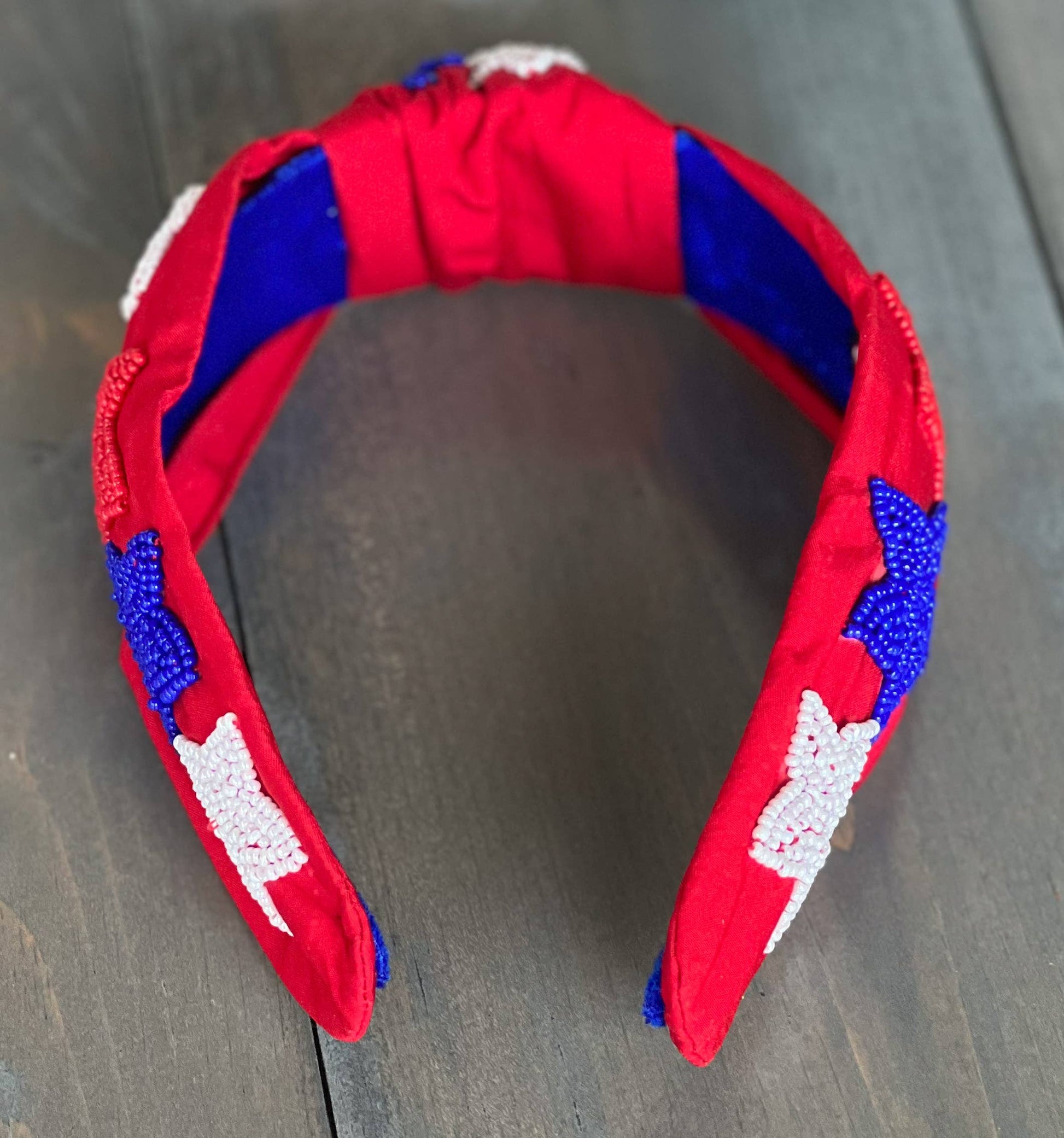 Patriotic Stars Red Seed Bead Front Knot Headband