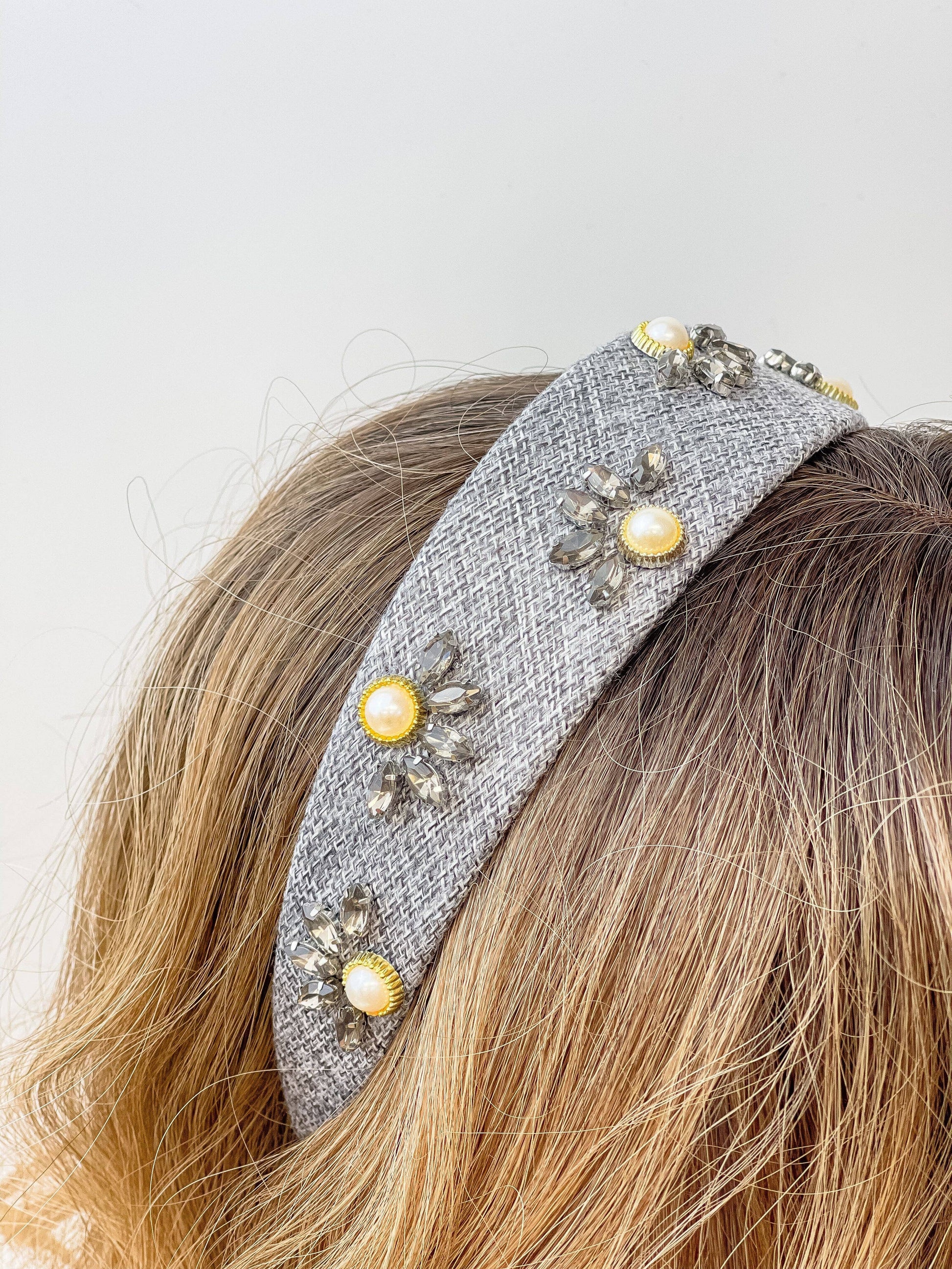 Introducing the Pearl Flower headband. It will be a trendy addition to your hair accessories collection. This 2" wide fashion headband is a standout piece that adds a touch of elegance to any outfit. It's perfect for women who love to accessorize and make a style statement. Enjoy this stylish piece from our brand.