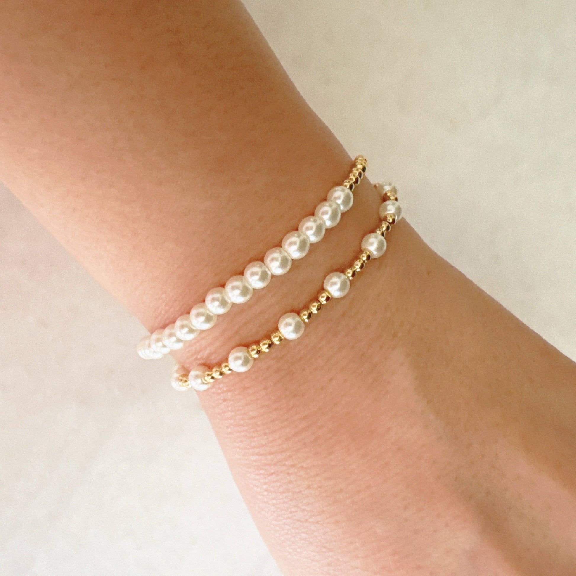 Add timeless charm to your accessory collection with the Pearls And Gold Stretch Bracelet Set. Featuring elegant glass pearls paired with gleaming gold beads, this set brings effortless sophistication and versatility to any look. Wear them together or mix and match with your favorites.