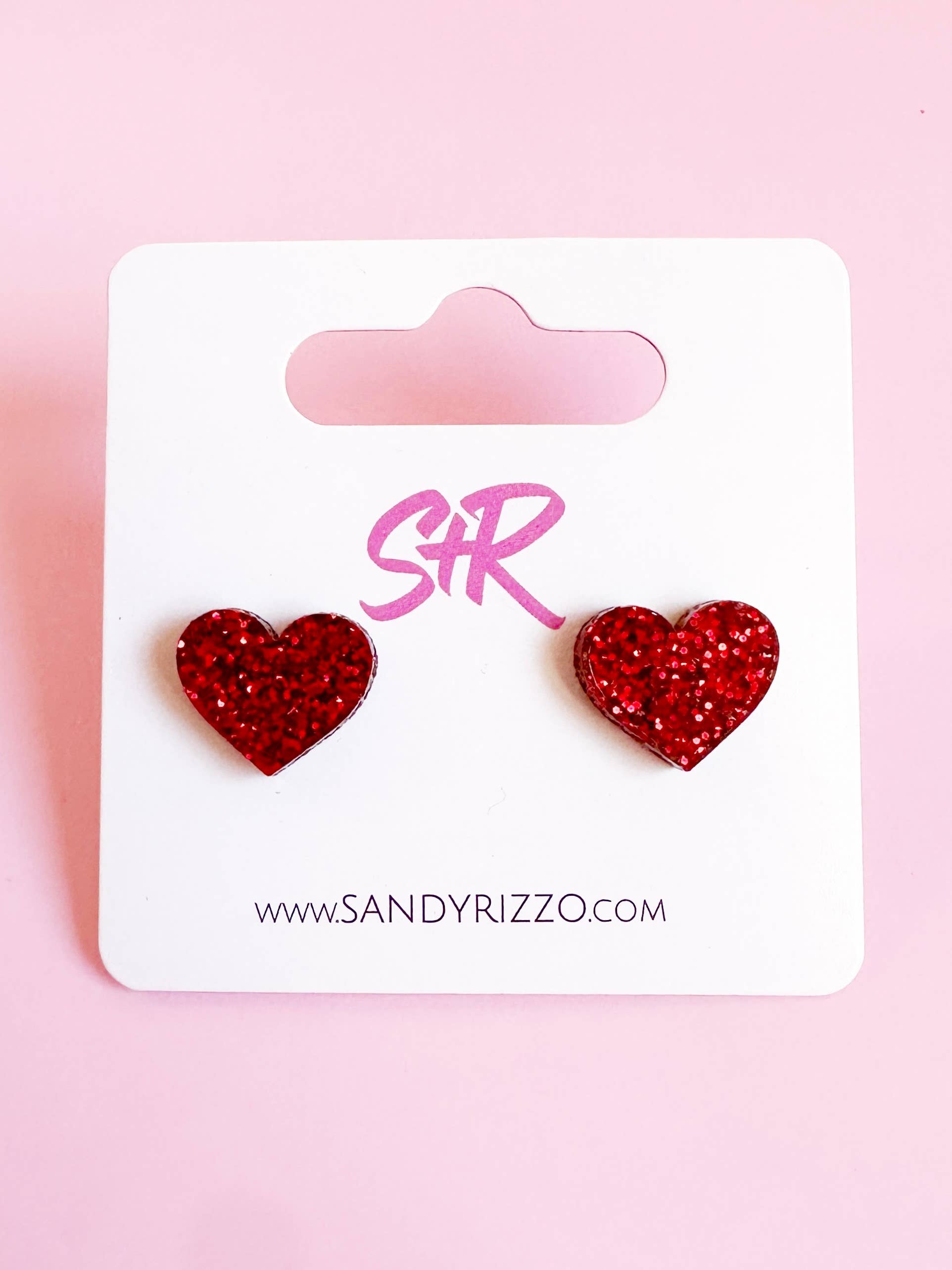 Red glitter heart studs. Perfect for Valentine's Day or to gift to someone you love!