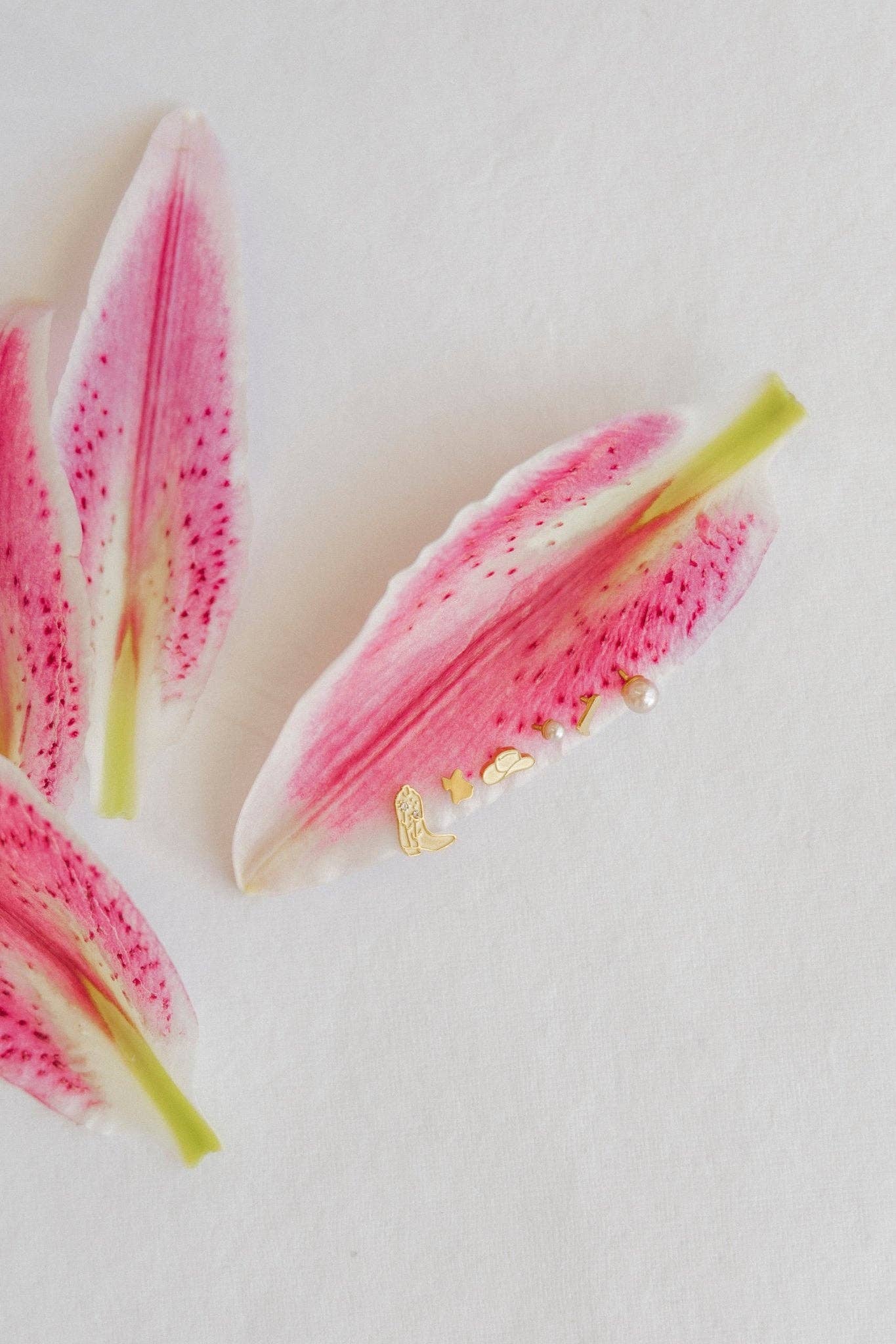The Screwback Stud Earrings - Daisy Cowgirl Boot are part of a special collaboration with Petite Paloma Boots. These 10mm earrings feature a unique cowgirl boot design with CZ detailing in the center of the flower, adding a touch of sparkle to this western-inspired piece. The screw back earrings ensure a secure and comfortable fit, perfect for all-day wear. hypoallergenic and lightweight, these earrings are ideal for both teens and adults. Where to Wear: * Western-Themed Events: Perfect for adding a charming and unique touch to your outfit. * Casual Outings: Ideal for adding a playful yet refined accessory to your everyday look. * Gifts for Cowgirl Lovers: Pairs perfectly with your Petite Paloma Boots. Features: * 10mm cowgirl boot design with CZ detailing * Screwback earrings for a secure fit * hypoallergenic and safe for sensitive ears * Lightweight and comfortable for all-day wear * Part of the Petite Paloma collaboration *