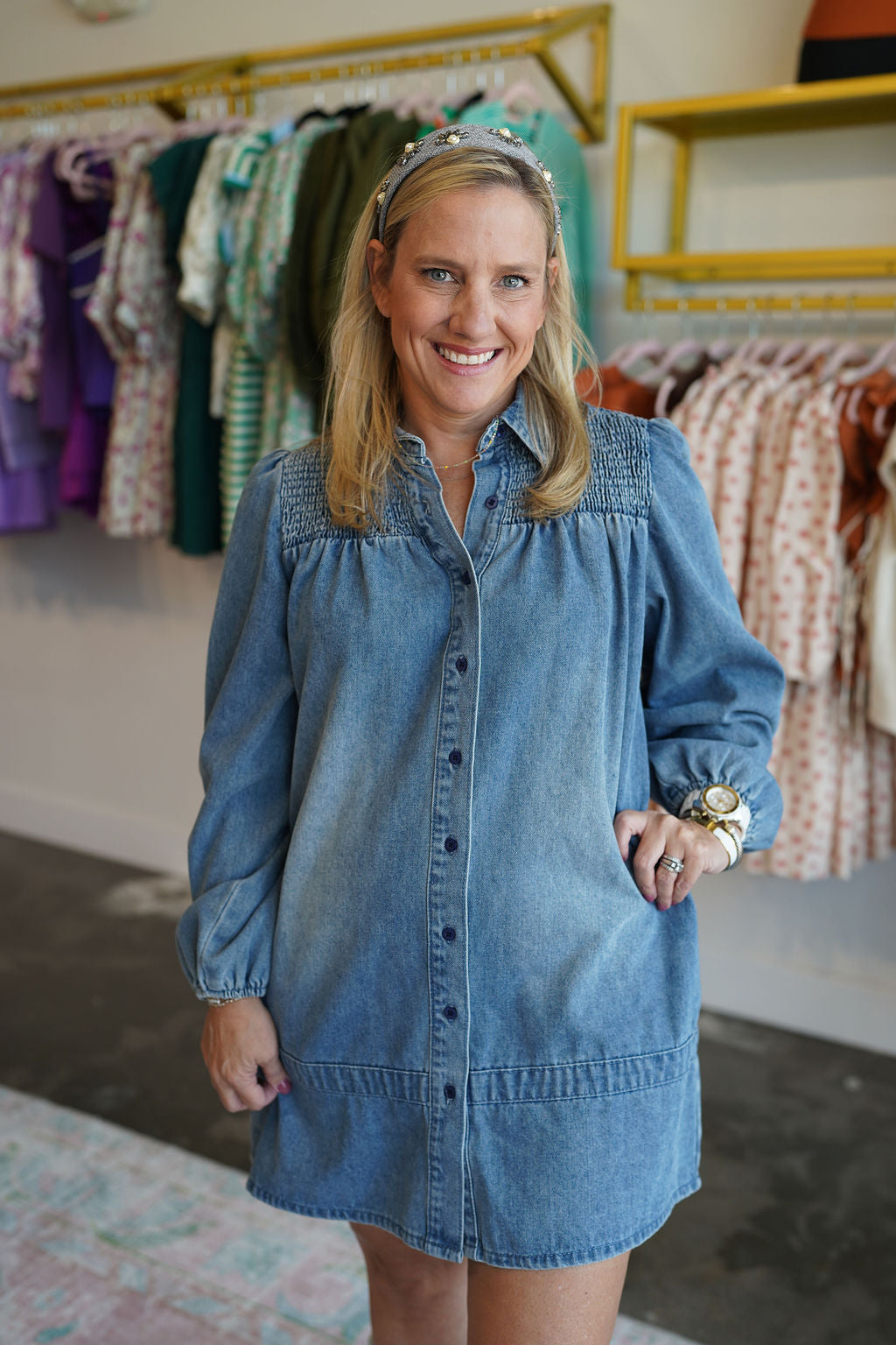 Everyone needs a denim dress and this one is perfect! Dress it up or down and pair with your favorite boots and accessories.